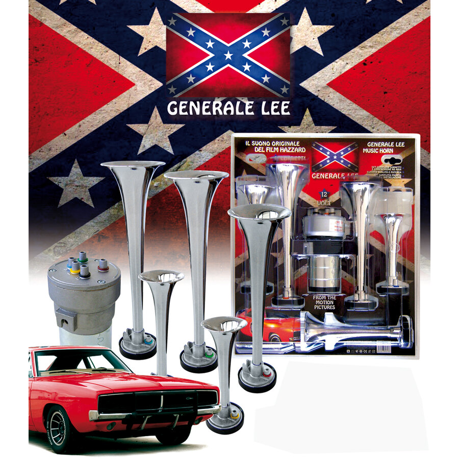 Tromba pneumatica 5 cornetti cromati musicale Generale Lee Hazzard